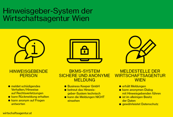 Wir agieren sparsam, wirtschaftlich und transparent nach ethischen Grundsätzen. Fairness, Lauterkeit, Transparenz und Regelkonformität sind Werte, die unser tägliches Handeln begleiten. Als wichtiges Instrument zur Umsetzung dieser Prinzipien wurde in der Wirtschaftsagentur auch ein Compliance-Management-System geschaffen. Für allfällige Rückfragen zu diesem Thema steht Ihnen unser Compliance-Officer gerne zur Verfügung: